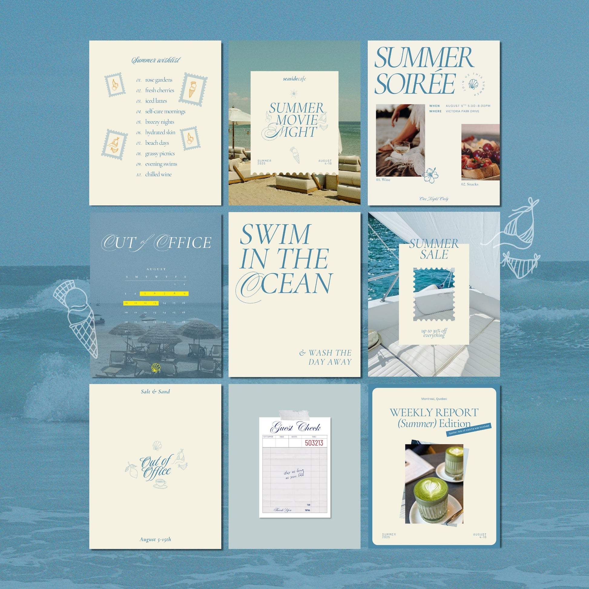 You may not be on vacation right now, but imagine the warm sun on your skin and the sand under your feet (and a slushy margarita in your hand), because these aesthetic and breezy Canva templates will take you to your dream vacation (kind of).